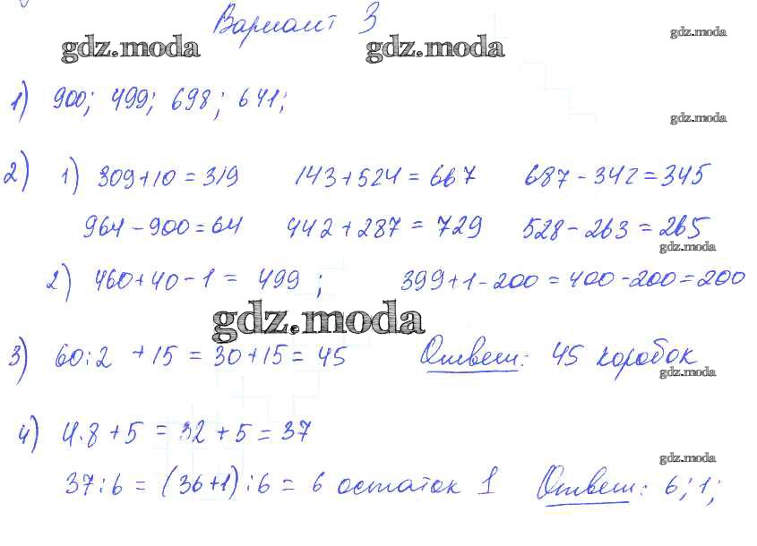 ОТВЕТ на задание № Вариант 3 Контрольные работы по Математике 2-4 класс Волкова Школа России