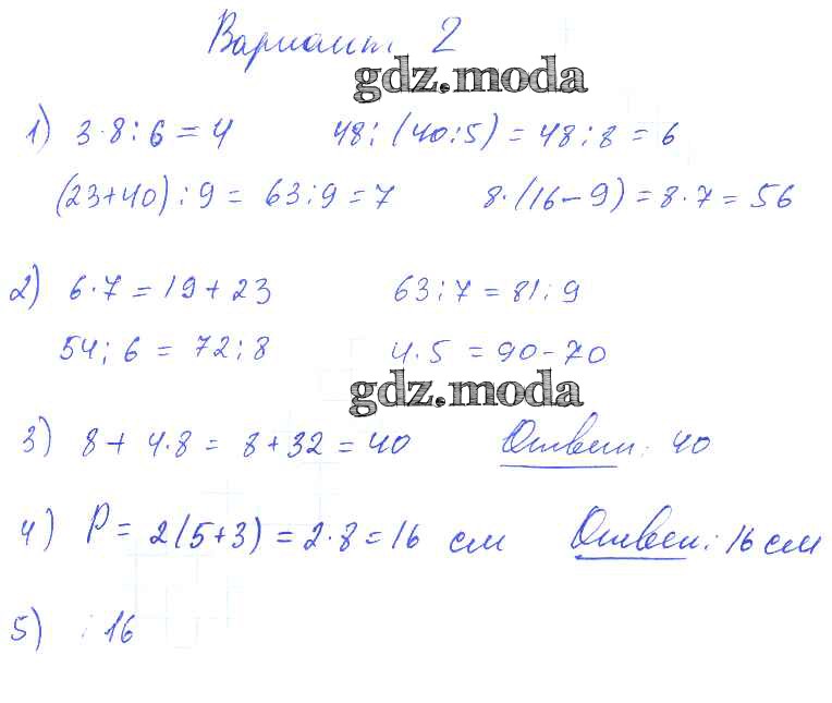 ОТВЕТ на задание № Вариант 2 Контрольные работы по Математике 2-4 класс Волкова Школа России