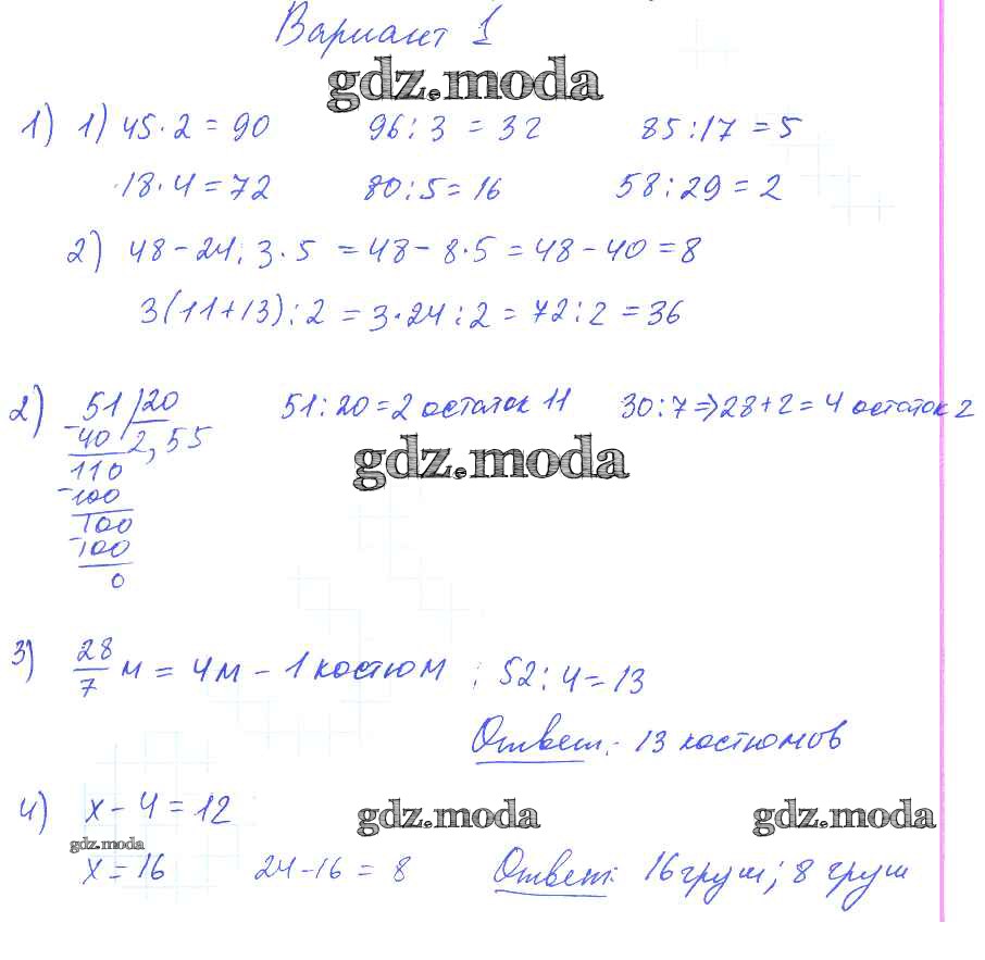 ОТВЕТ на задание № Вариант 1 Контрольные работы по Математике 2-4 класс Волкова Школа России
