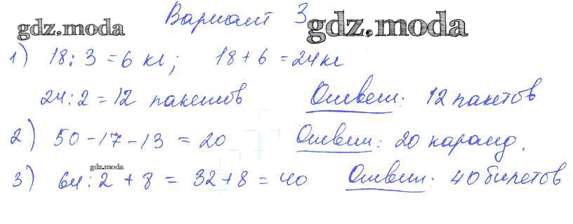 ОТВЕТ на задание № Вариант 3 Контрольные работы по Математике 2-4 класс Волкова Школа России