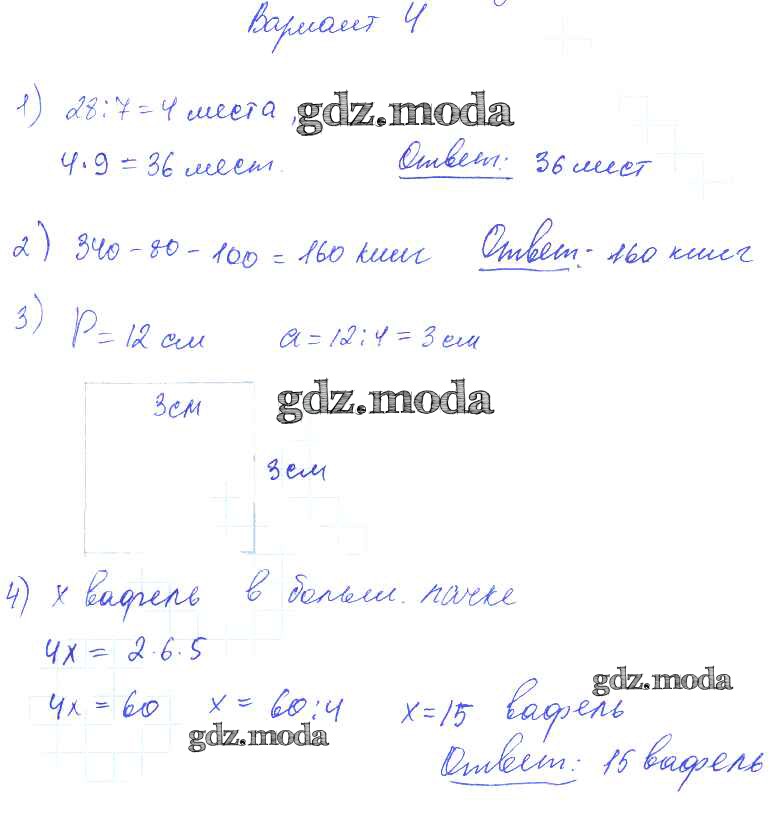 ОТВЕТ на задание № Вариант 4 Контрольные работы по Математике 2-4 класс Волкова Школа России