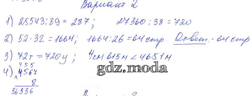 ОТВЕТ на задание № Вариант 2 Контрольные работы по Математике 2-4 класс Волкова Школа России