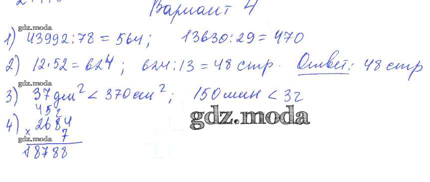 ОТВЕТ на задание № Вариант 4 Контрольные работы по Математике 2-4 класс Волкова Школа России