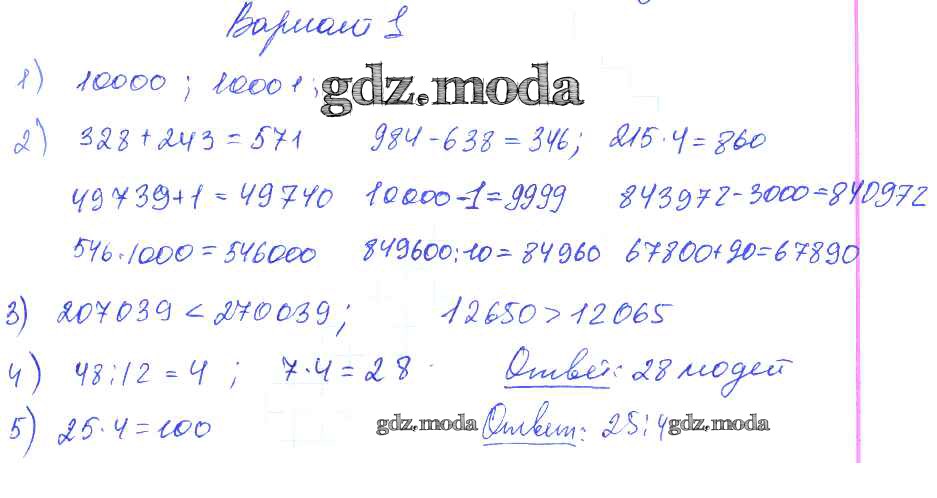 ОТВЕТ на задание № Вариант 1 Контрольные работы по Математике 2-4 класс Волкова Школа России