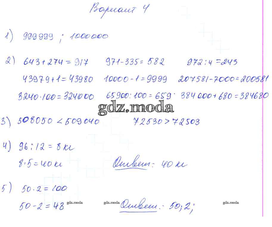 ОТВЕТ на задание № Вариант 4 Контрольные работы по Математике 2-4 класс Волкова Школа России