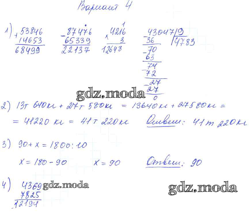 ОТВЕТ на задание № Вариант 4 Контрольные работы по Математике 2-4 класс Волкова Школа России