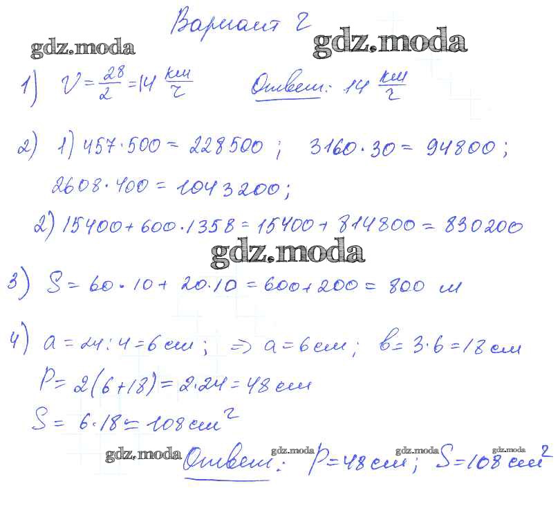 ОТВЕТ на задание № Вариант 2 Контрольные работы по Математике 2-4 класс Волкова Школа России