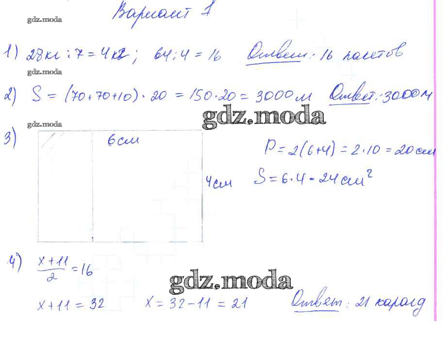 ОТВЕТ на задание № Вариант 1 Контрольные работы по Математике 2-4 класс Волкова Школа России