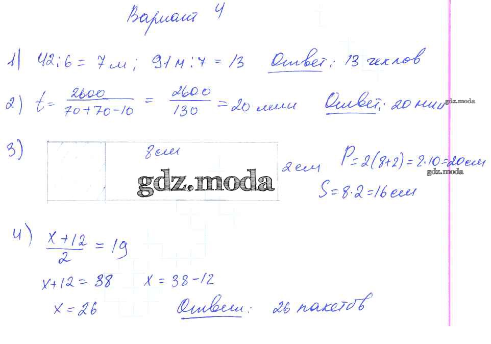 ОТВЕТ на задание № Вариант 4 Контрольные работы по Математике 2-4 класс Волкова Школа России