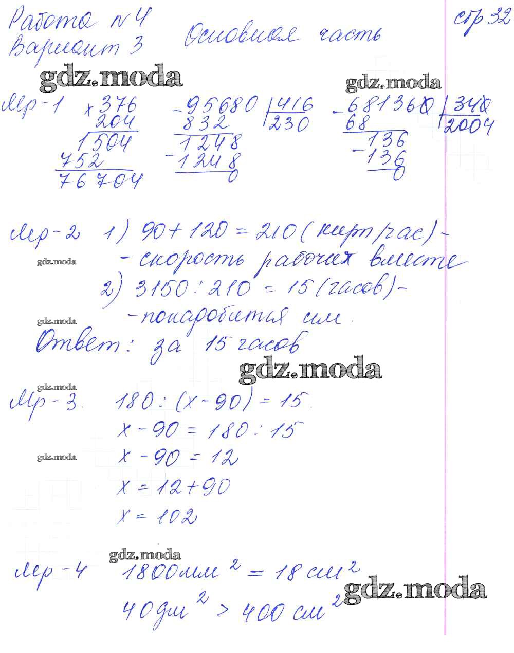 ГДЗ решение к заданию № 32 Математика 4 класс контрольные и диагностические работы Нефедова М.Г. (к уч. Башмакова) Аст/Астрель 2016 ФГОС бесплатно на гдз.мода!
