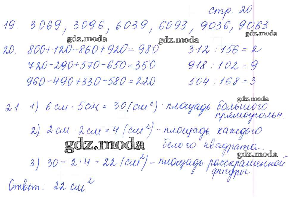 ГДЗ решение к заданию № 20 Математика 4 класс рабочая тетрадь Кремнева С.Ю. (к уч.Моро) Экзамен 2018 Часть 1, Часть 2 ФГОС бесплатно на гдз.мода!