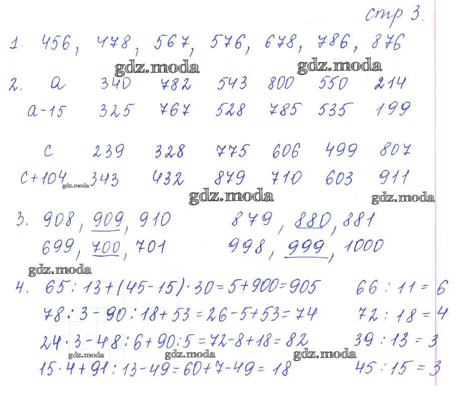 ГДЗ решение к заданию № 3 Математика 4 класс рабочая тетрадь Кремнева С.Ю. (к уч.Моро) Экзамен 2018 Часть 1, Часть 2 ФГОС бесплатно на гдз.мода!