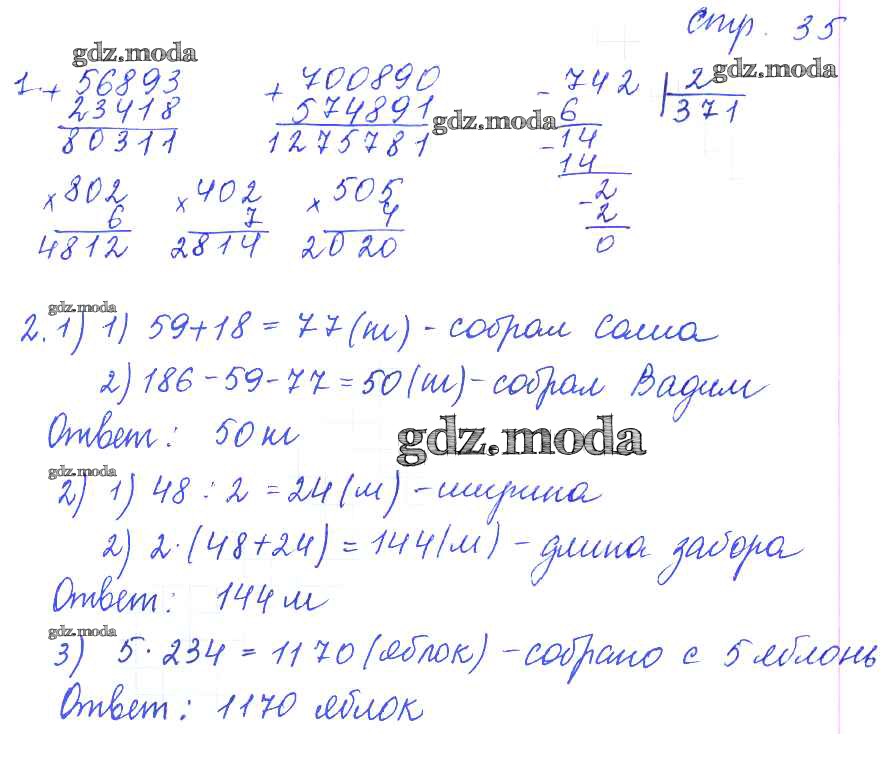 ГДЗ решение к заданию № 35 Математика 4 класс рабочая тетрадь Кремнева С.Ю. (к уч.Моро) Экзамен 2018 Часть 1, Часть 2 ФГОС бесплатно на гдз.мода!