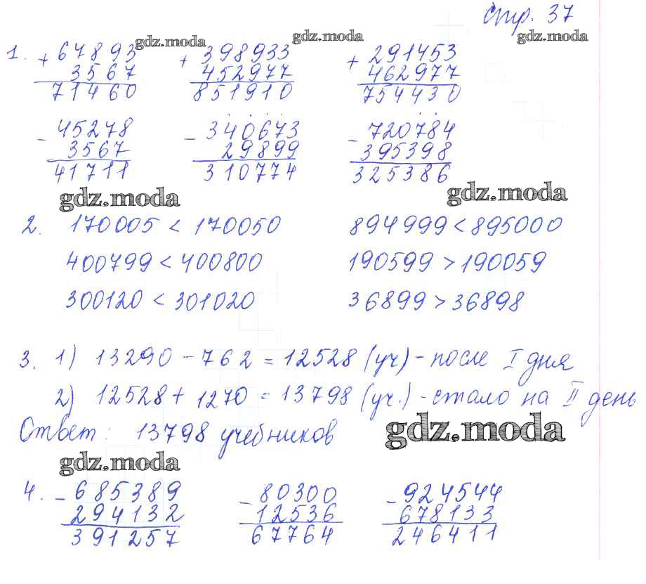 ГДЗ решение к заданию № 37 Математика 4 класс рабочая тетрадь Кремнева С.Ю. (к уч.Моро) Экзамен 2018 Часть 1, Часть 2 ФГОС бесплатно на гдз.мода!