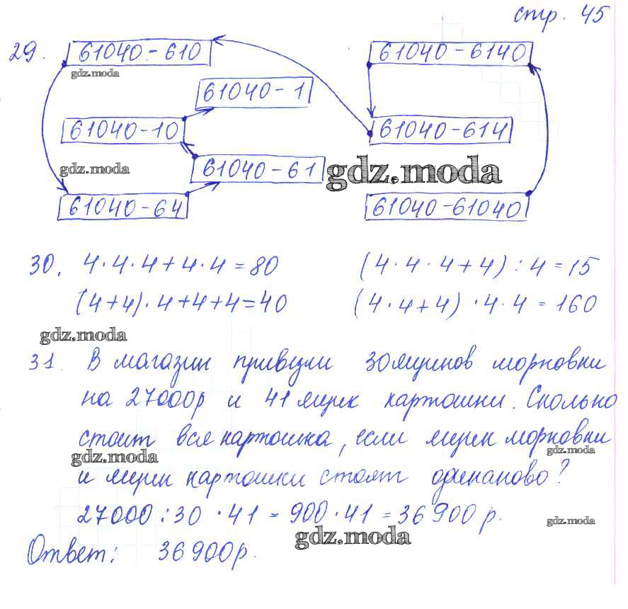 ГДЗ решение к заданию № 45 Математика 4 класс рабочая тетрадь Кремнева С.Ю. (к уч.Моро) Экзамен 2018 Часть 1, Часть 2 ФГОС бесплатно на гдз.мода!