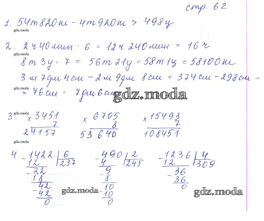 ГДЗ решение к заданию № 62 Математика 4 класс рабочая тетрадь Кремнева С.Ю. (к уч.Моро) Экзамен 2018 Часть 1, Часть 2 ФГОС бесплатно на гдз.мода!