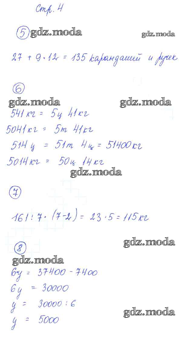 ОТВЕТ на задание № 4 Рабочая тетрадь по Математике 4 класс Кремнева УМК