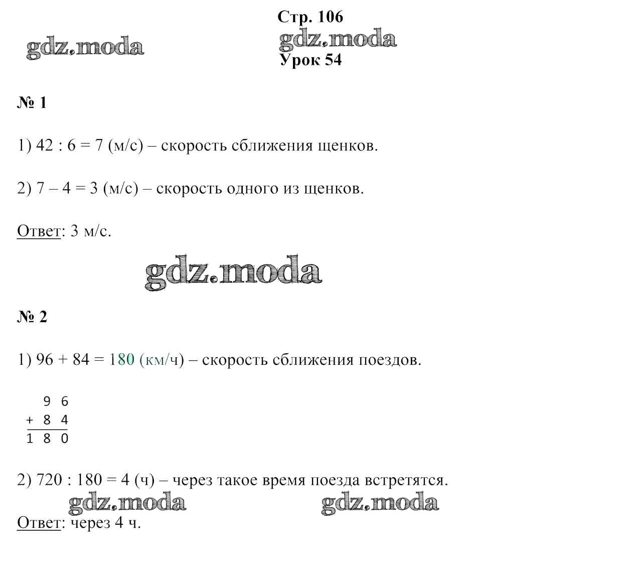 ОТВЕТ на задание № 106 Учебник по Математике 4 класс Муравьева