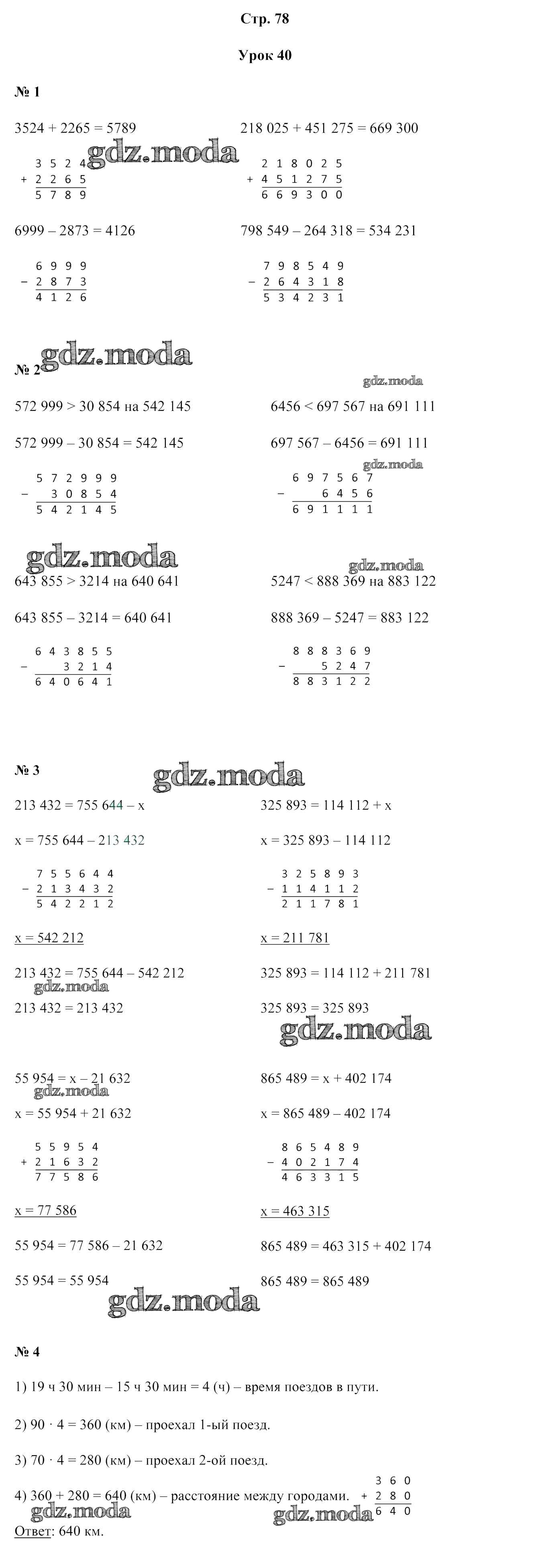 ОТВЕТ на задание № 78 Учебник по Математике 4 класс Муравьева
