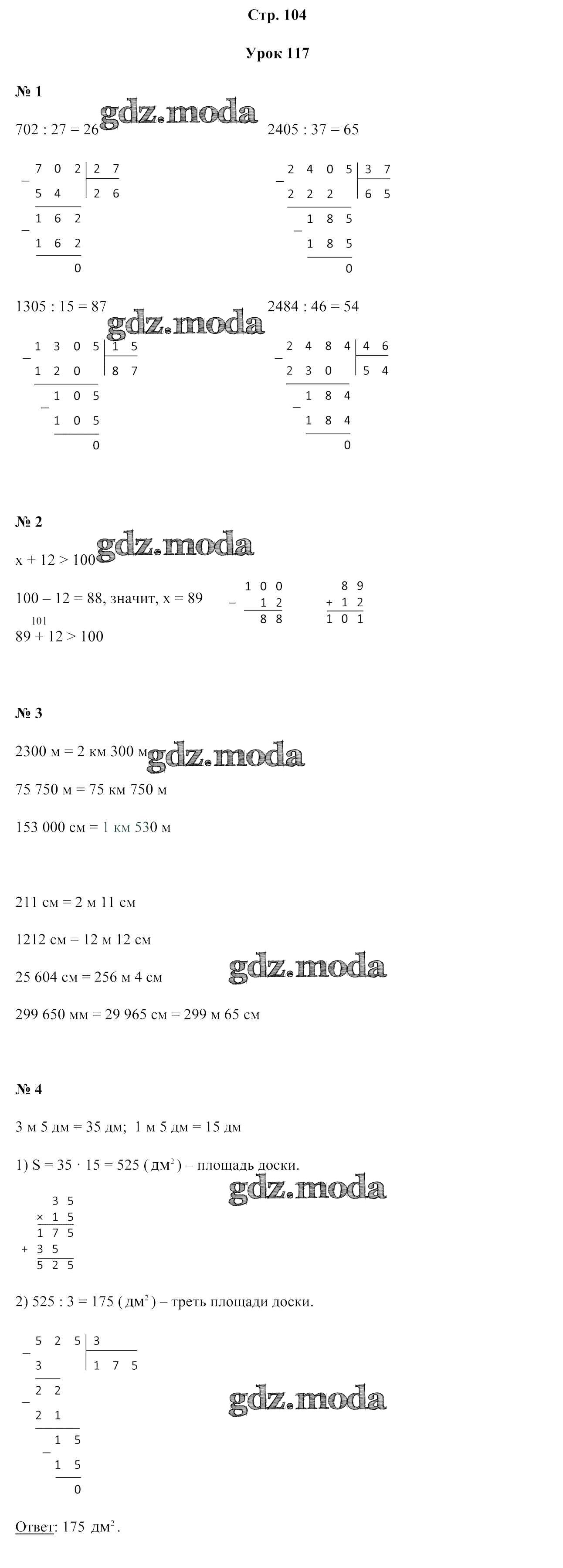 ОТВЕТ на задание № 104 Учебник по Математике 4 класс Муравьева