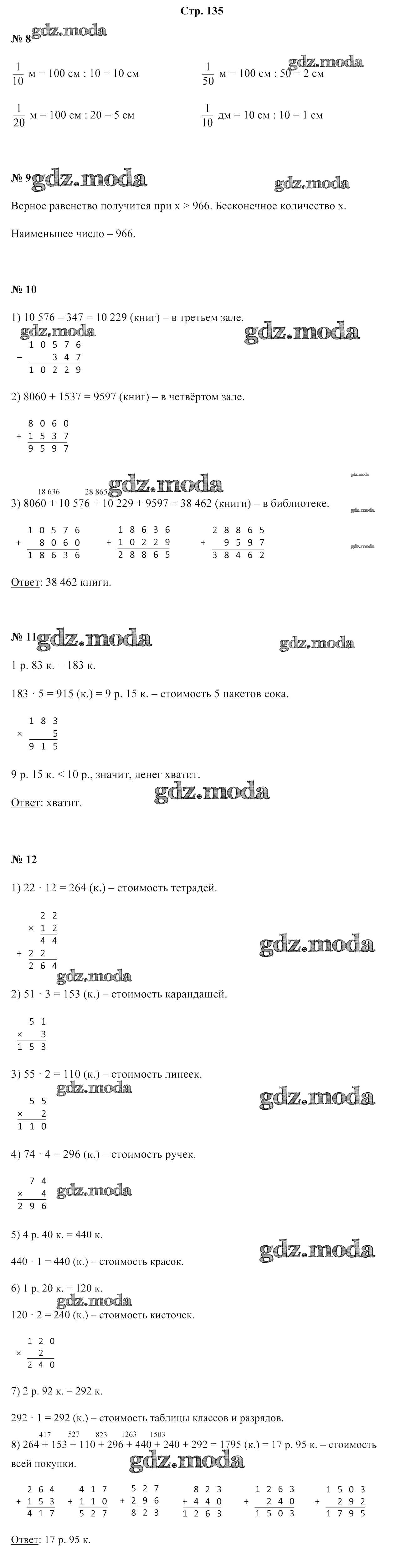 ОТВЕТ на задание № 135 Учебник по Математике 4 класс Муравьева