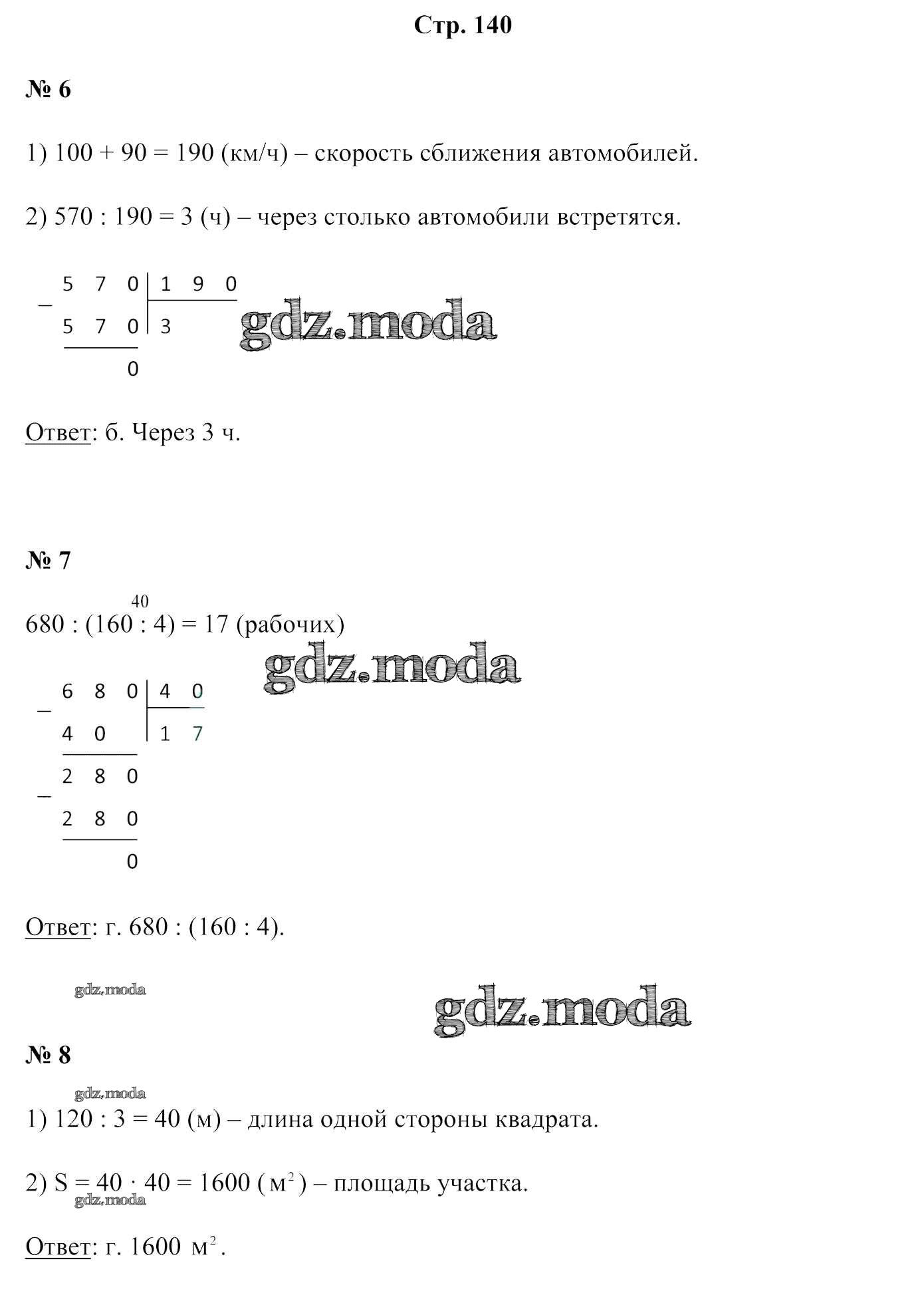 ОТВЕТ на задание № 140 Учебник по Математике 4 класс Муравьева