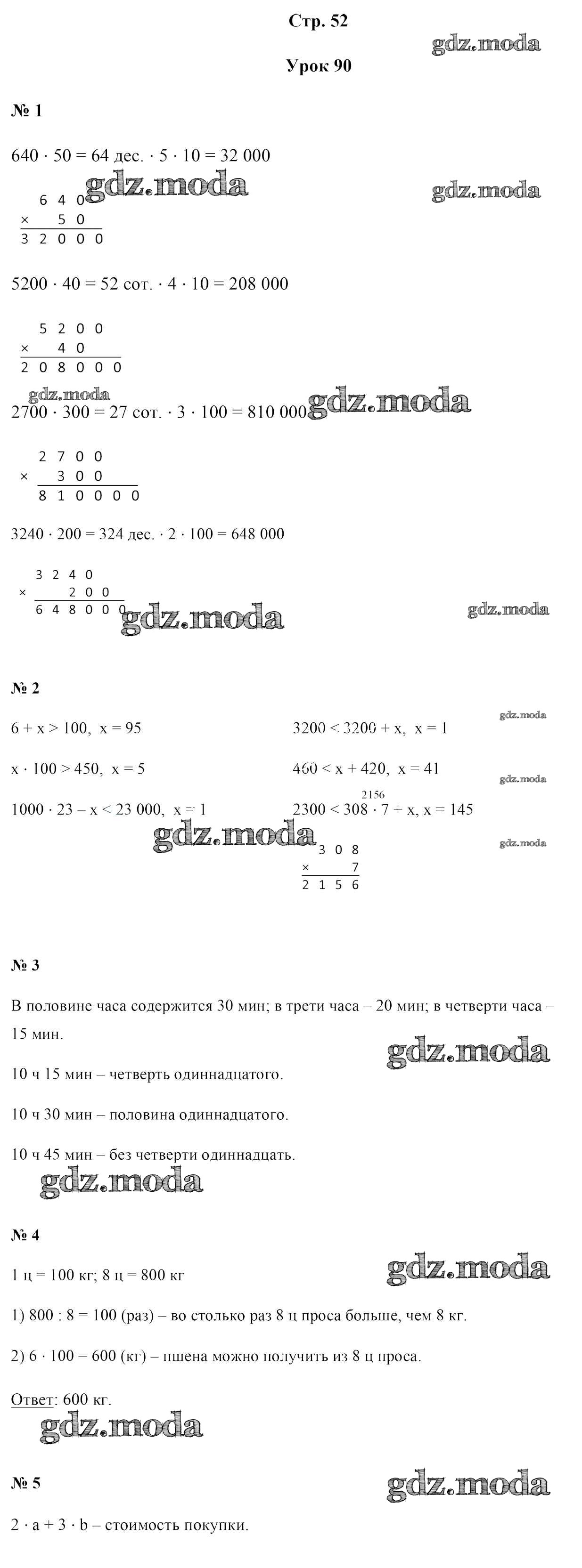 ОТВЕТ на задание № 52 Учебник по Математике 4 класс Муравьева