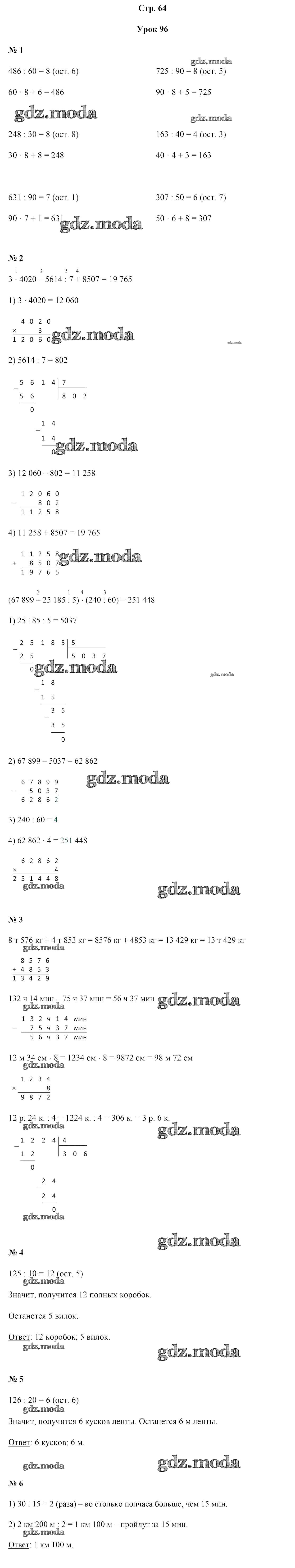ОТВЕТ на задание № 64 Учебник по Математике 4 класс Муравьева