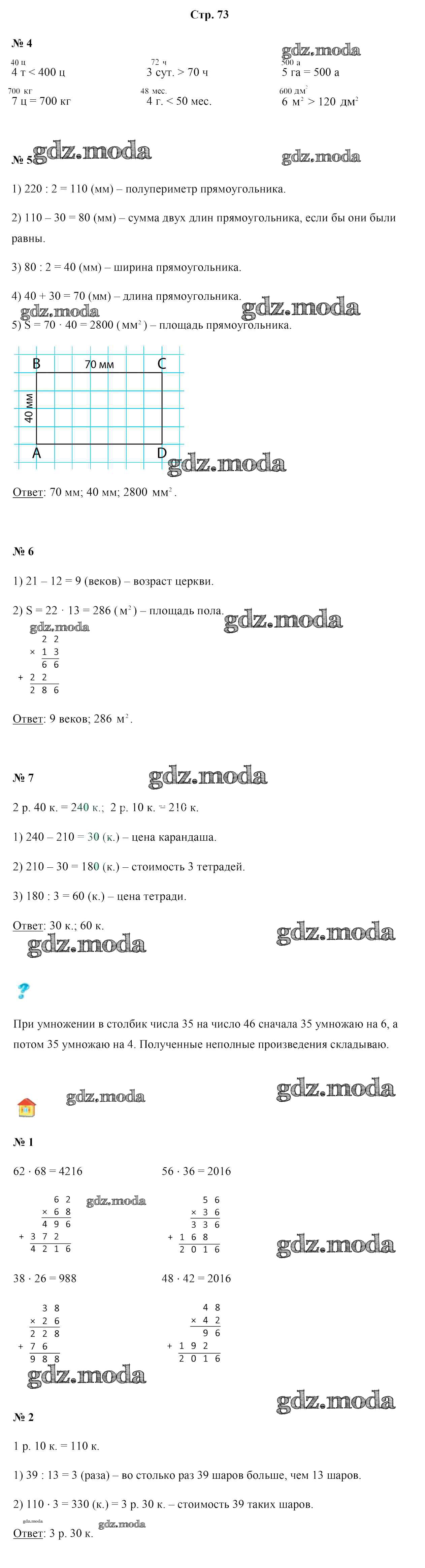 ОТВЕТ на задание № 73 Учебник по Математике 4 класс Муравьева