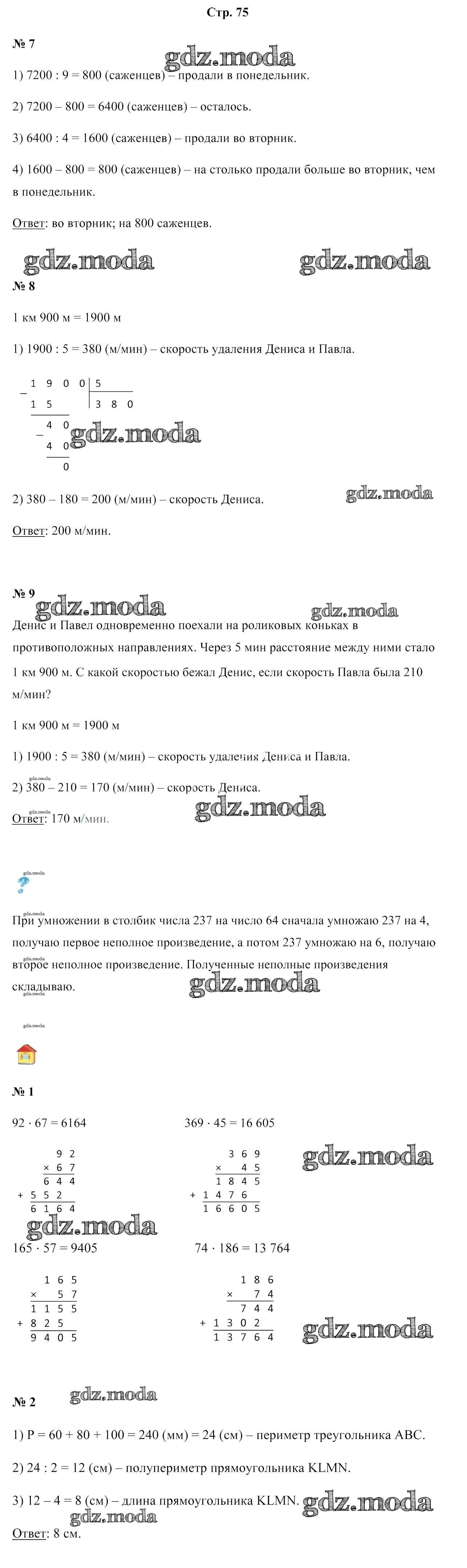 ОТВЕТ на задание № 75 Учебник по Математике 4 класс Муравьева