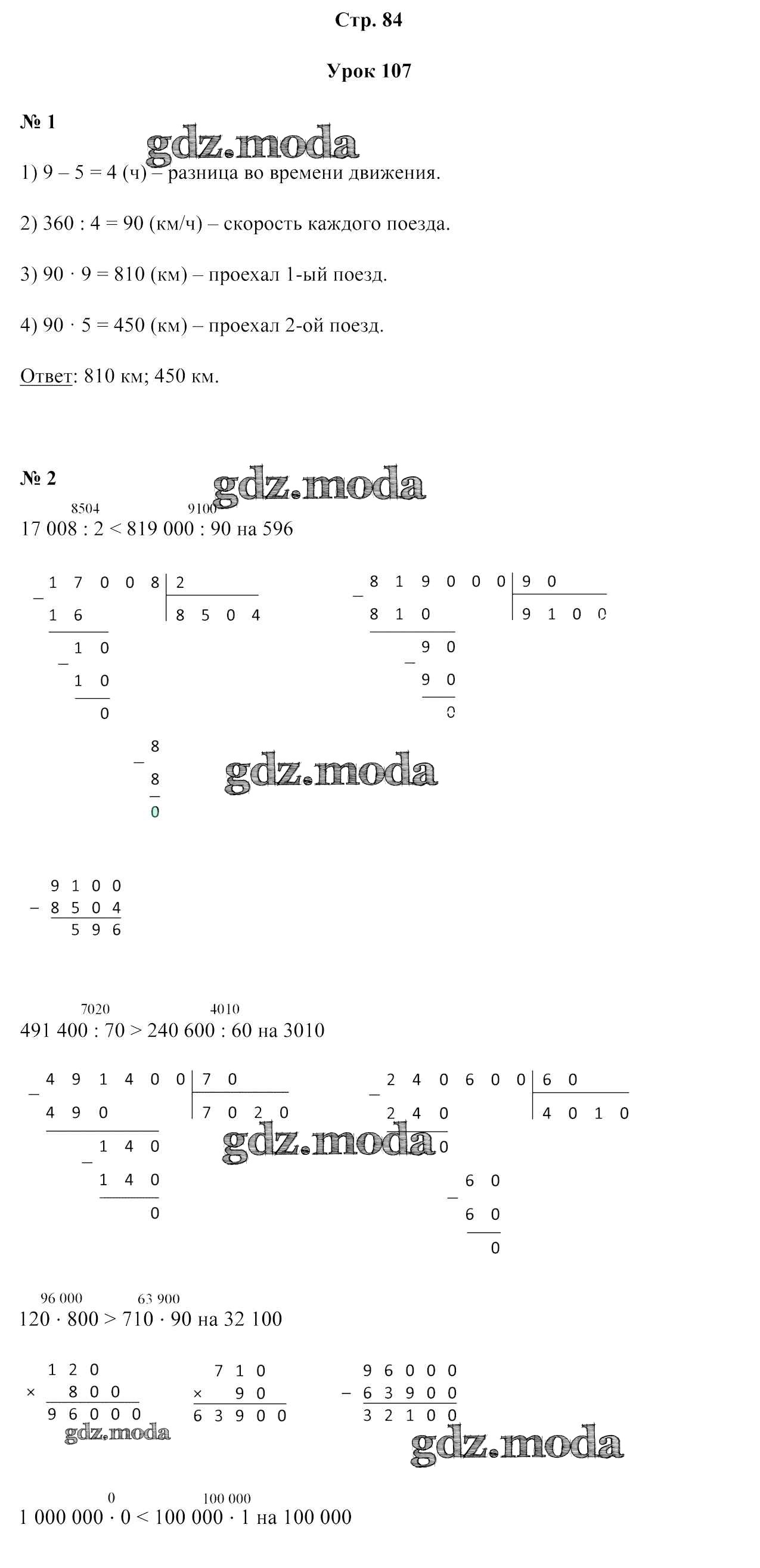 ОТВЕТ на задание № 84 Учебник по Математике 4 класс Муравьева