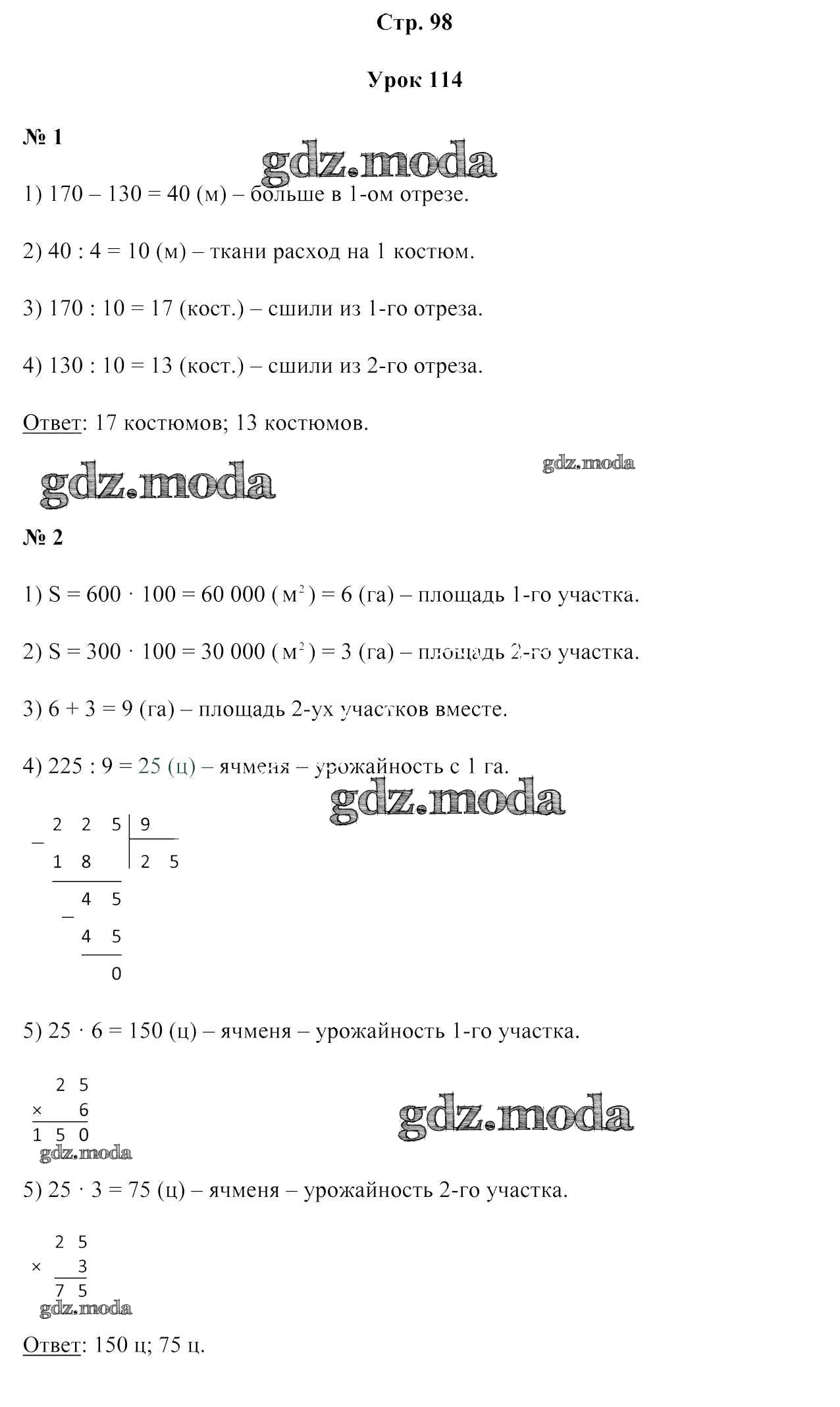 ОТВЕТ на задание № 98 Учебник по Математике 4 класс Муравьева