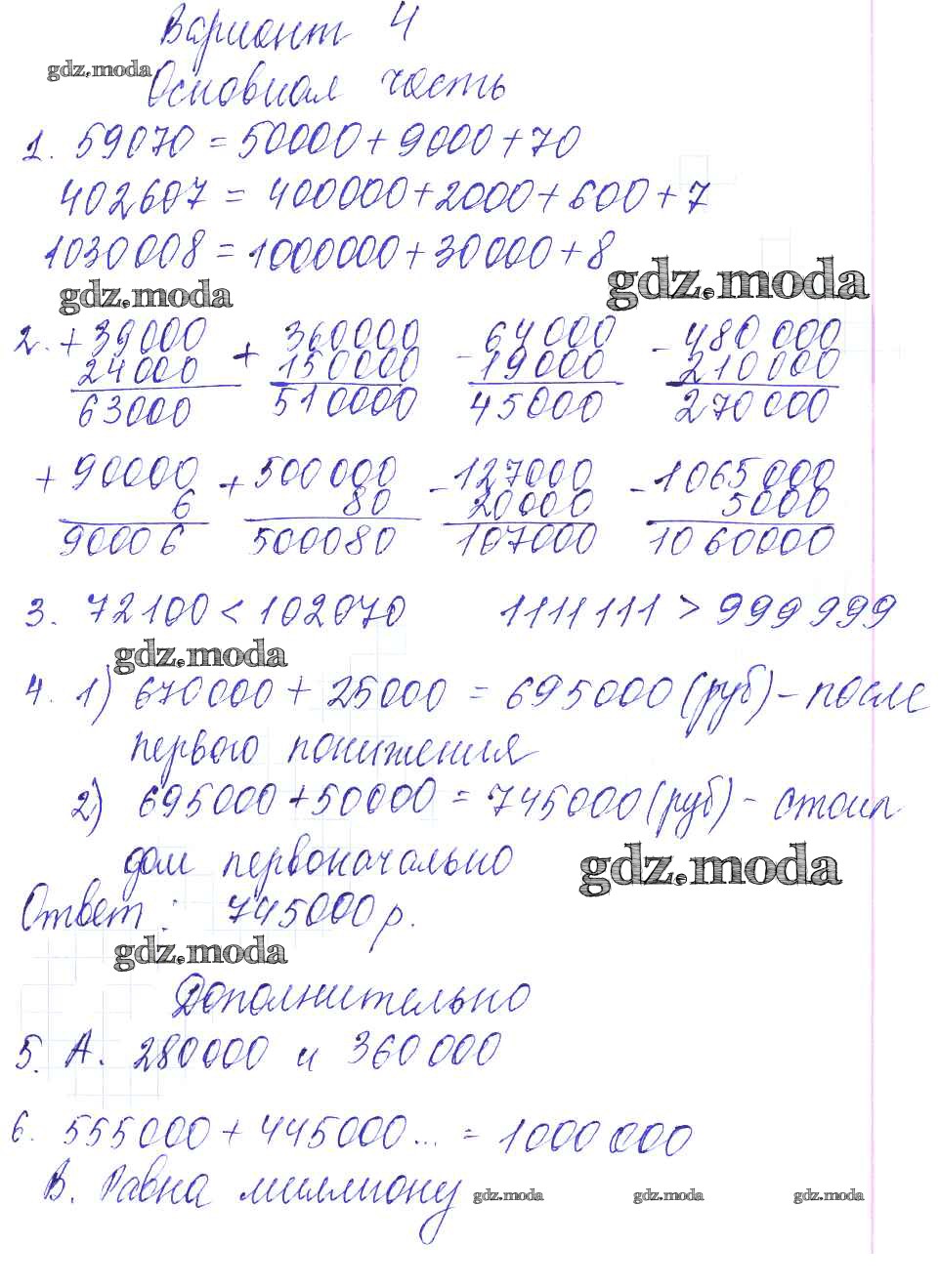 ГДЗ решение к заданию № 4 Математика 4 класс тесты и самостоятельные работы для текущего контроля Нефедова М.Г. (к уч. Башмакова) Дрофа 2016 ФГОС бесплатно на гдз.мода!
