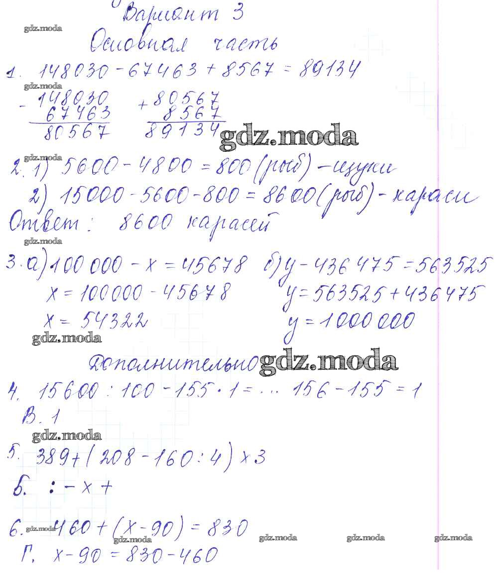 ГДЗ решение к заданию № 3 Математика 4 класс тесты и самостоятельные работы для текущего контроля Нефедова М.Г. (к уч. Башмакова) Дрофа 2016 ФГОС бесплатно на гдз.мода!