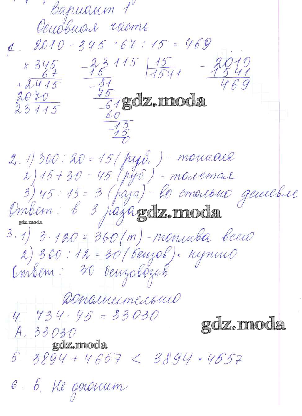 ГДЗ решение к заданию № 1 Математика 4 класс тесты и самостоятельные работы для текущего контроля Нефедова М.Г. (к уч. Башмакова) Дрофа 2016 ФГОС бесплатно на гдз.мода!