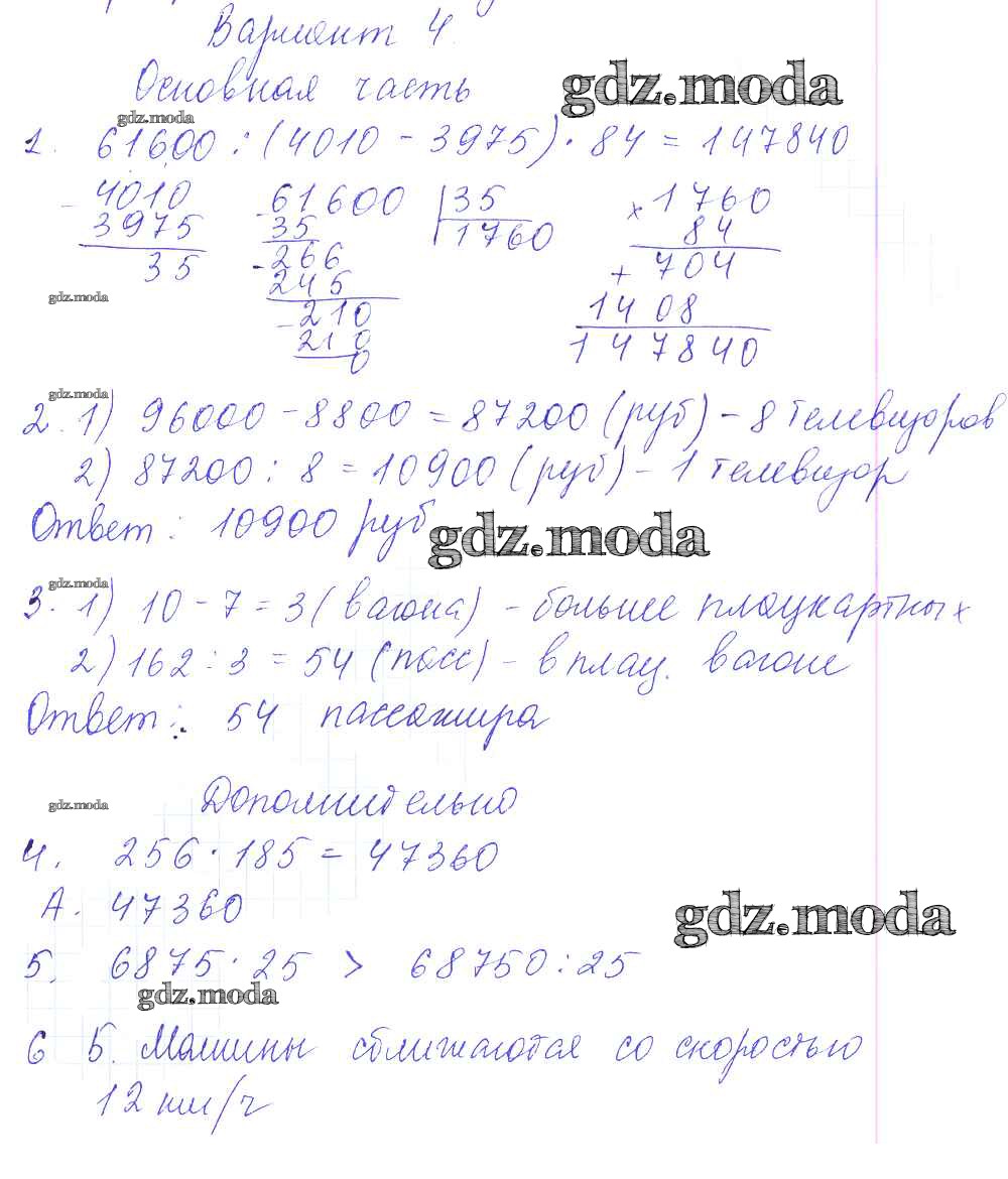 ГДЗ решение к заданию № 4 Математика 4 класс тесты и самостоятельные работы для текущего контроля Нефедова М.Г. (к уч. Башмакова) Дрофа 2016 ФГОС бесплатно на гдз.мода!