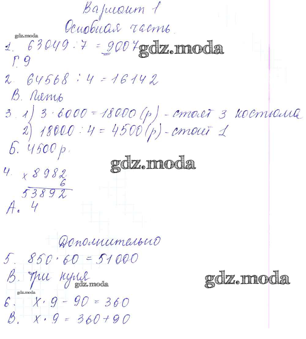 ГДЗ решение к заданию № 1 Математика 4 класс тесты и самостоятельные работы для текущего контроля Нефедова М.Г. (к уч. Башмакова) Дрофа 2016 ФГОС бесплатно на гдз.мода!