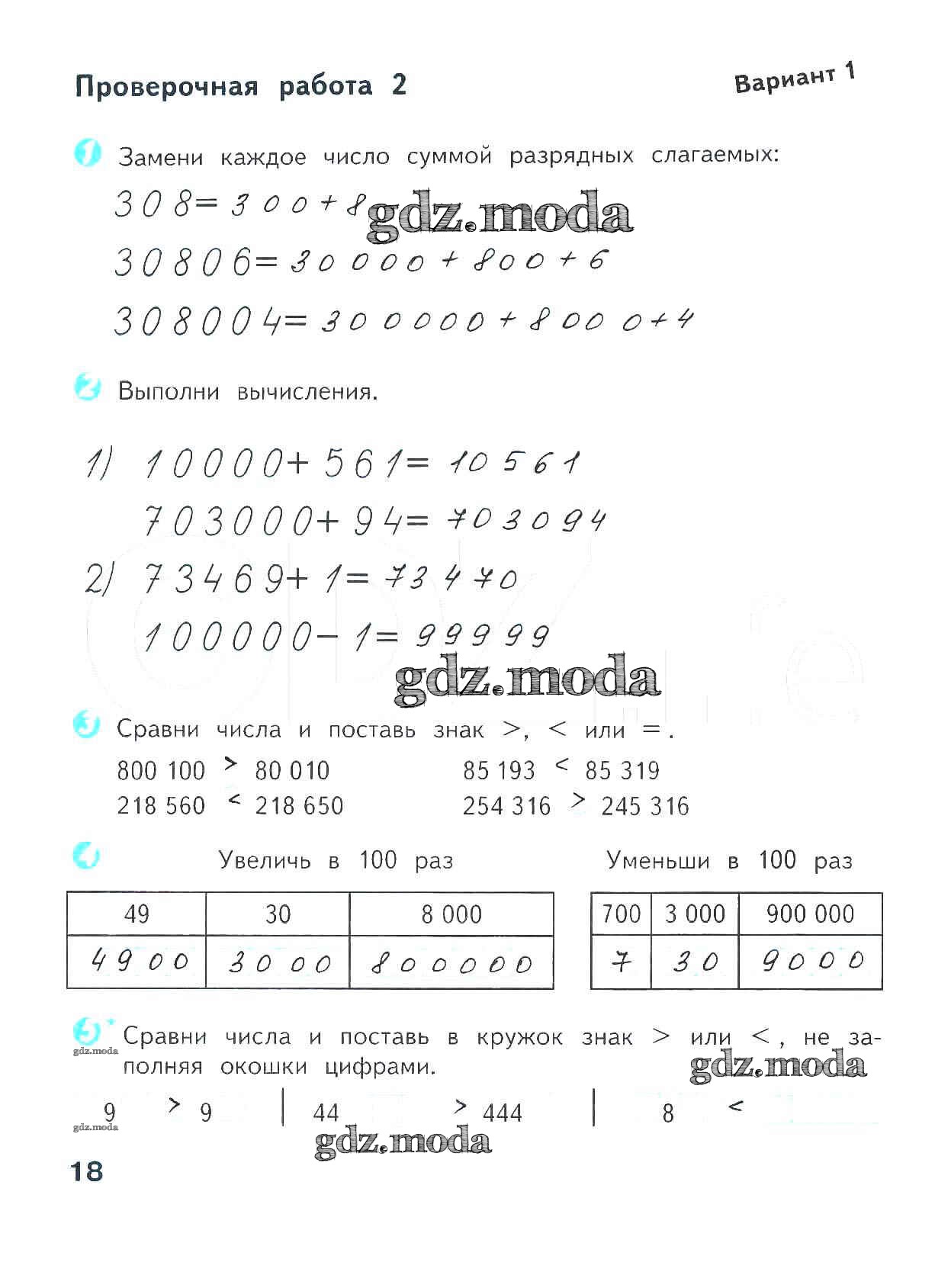 ГДЗ решение к заданию № 18 Математика 4 класс проверочные работы Волкова С.И. Просвещение 2014 ФГОС бесплатно на гдз.мода!