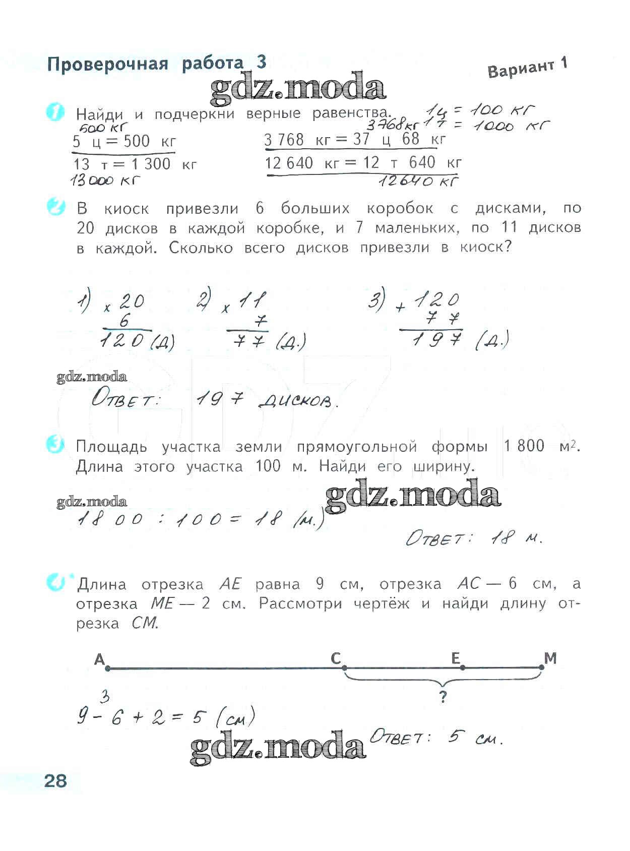 ГДЗ решение к заданию № 28 Математика 4 класс проверочные работы Волкова С.И. Просвещение 2014 ФГОС бесплатно на гдз.мода!