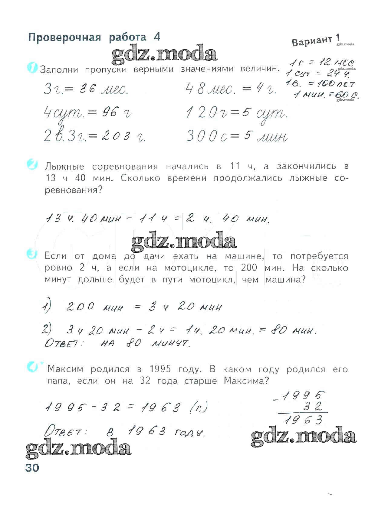 ГДЗ решение к заданию № 30 Математика 4 класс проверочные работы Волкова С.И. Просвещение 2014 ФГОС бесплатно на гдз.мода!