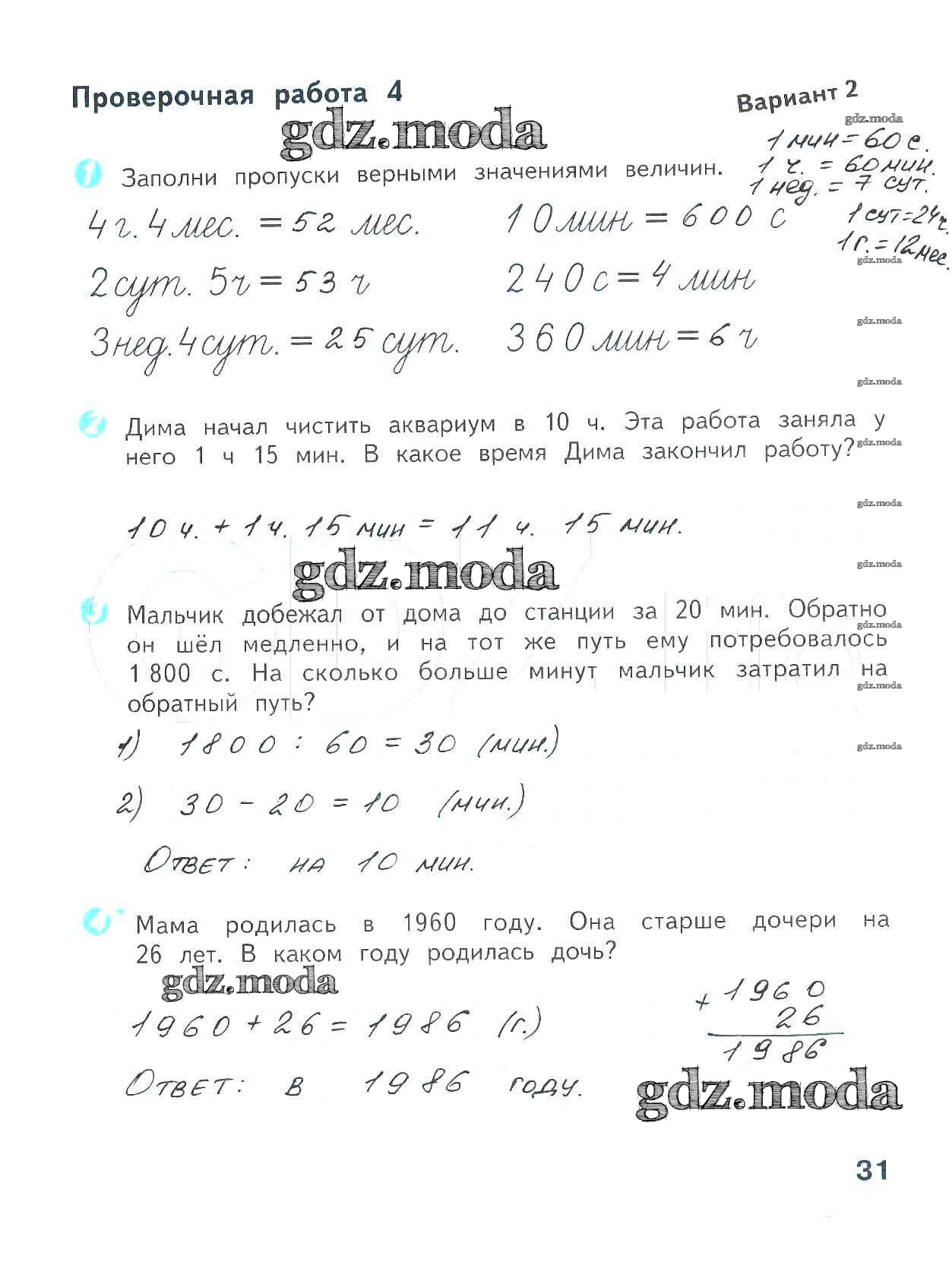 ГДЗ решение к заданию № 31 Математика 4 класс проверочные работы Волкова С.И. Просвещение 2014 ФГОС бесплатно на гдз.мода!
