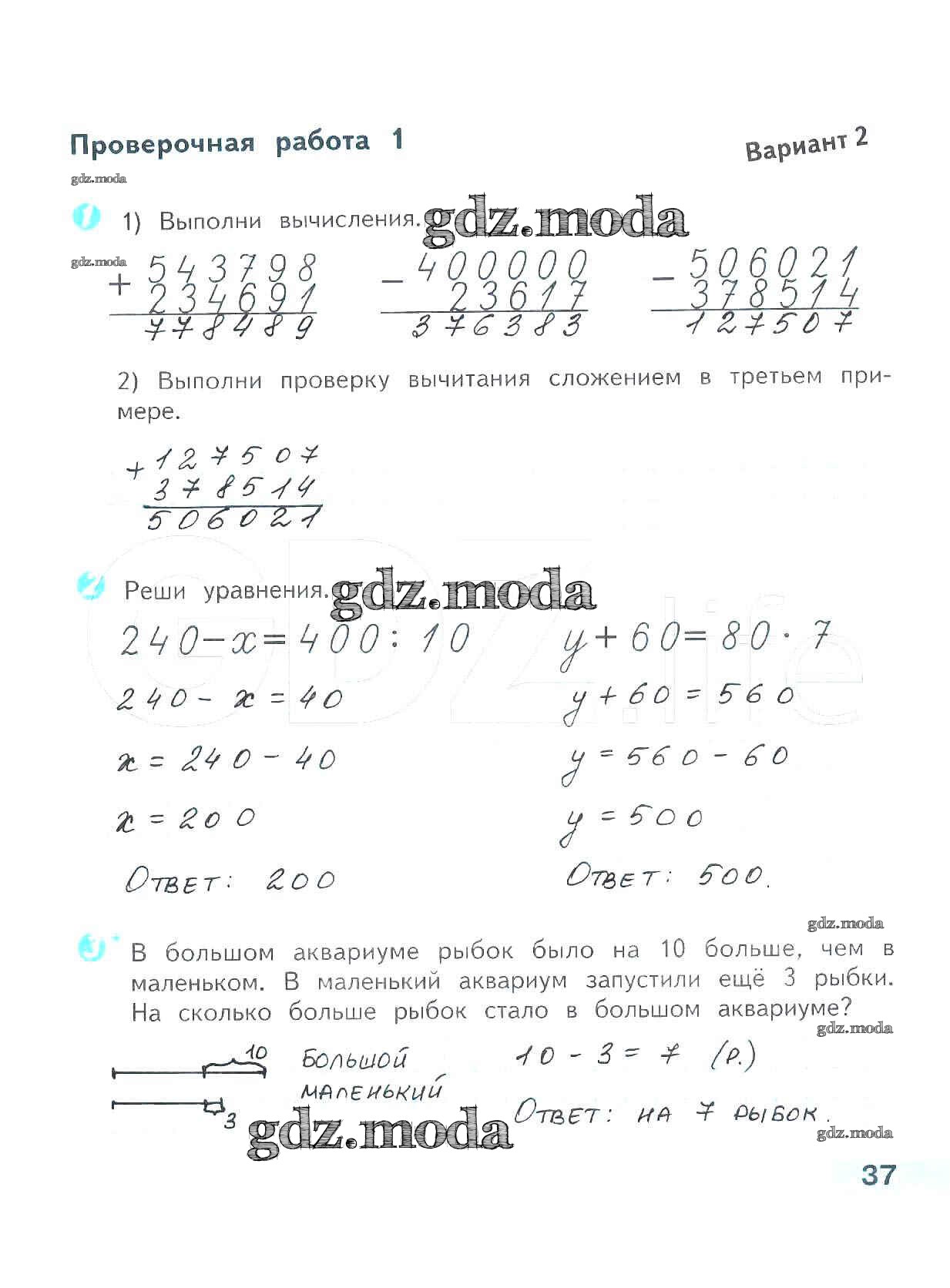 ГДЗ решение к заданию № 37 Математика 4 класс проверочные работы Волкова С.И. Просвещение 2014 ФГОС бесплатно на гдз.мода!
