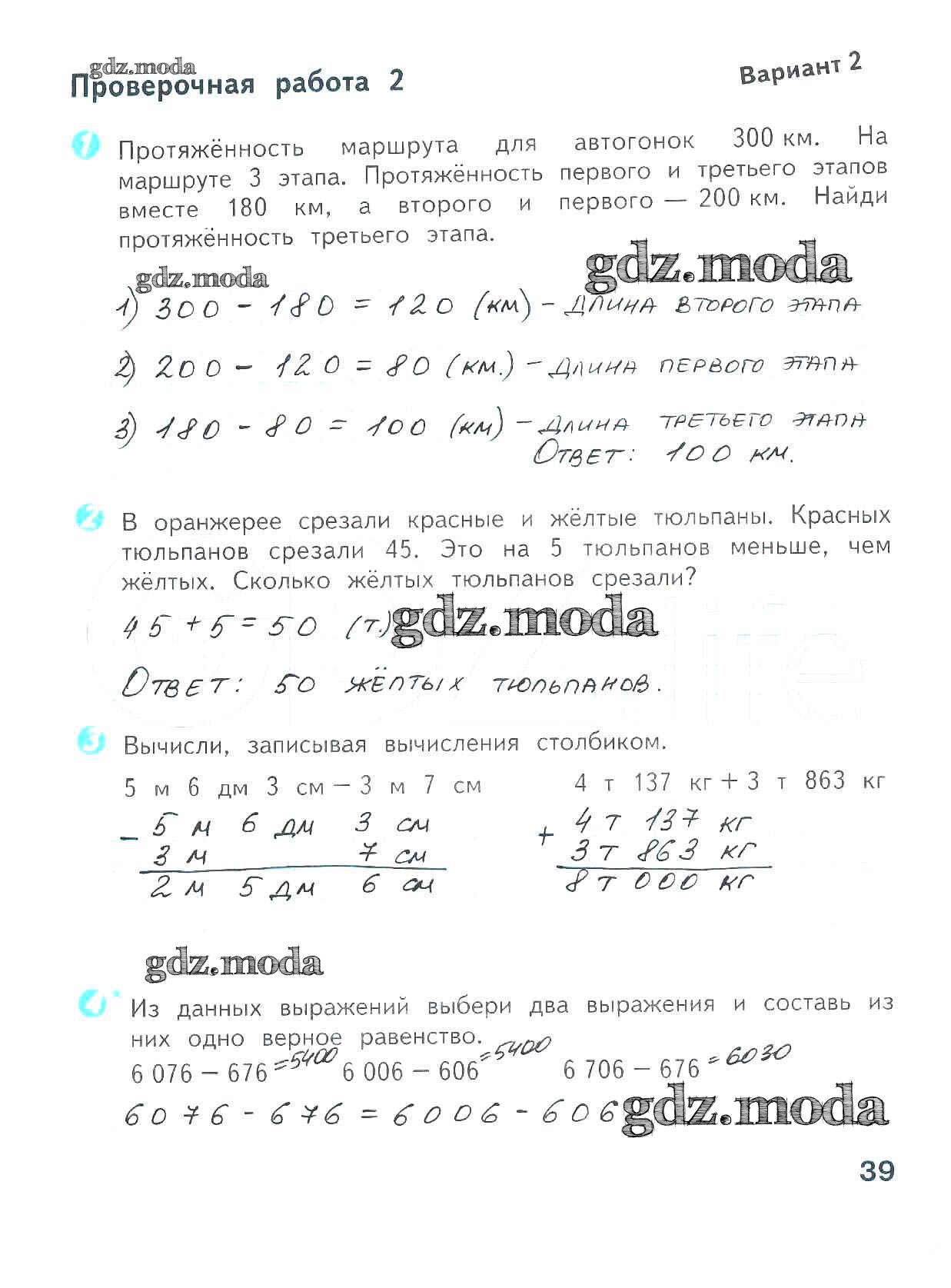 ГДЗ решение к заданию № 39 Математика 4 класс проверочные работы Волкова С.И. Просвещение 2014 ФГОС бесплатно на гдз.мода!