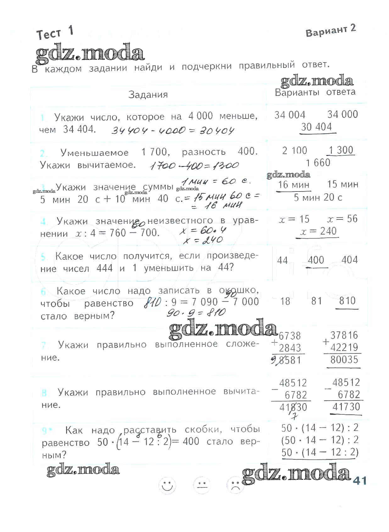 ОТВЕТ на задание № 41 Проверочные работы по Математике 4 класс Волкова Школа России