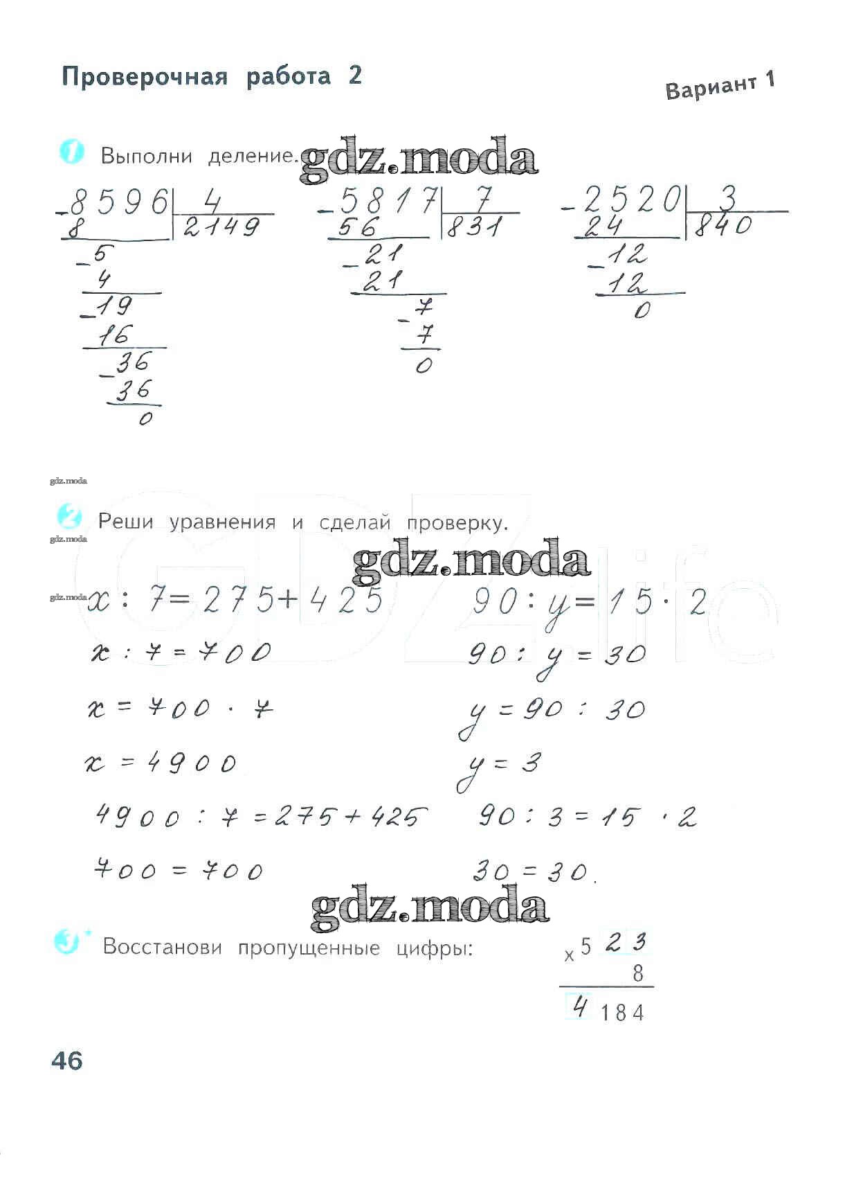 ГДЗ решение к заданию № 46 Математика 4 класс проверочные работы Волкова С.И. Просвещение 2014 ФГОС бесплатно на гдз.мода!