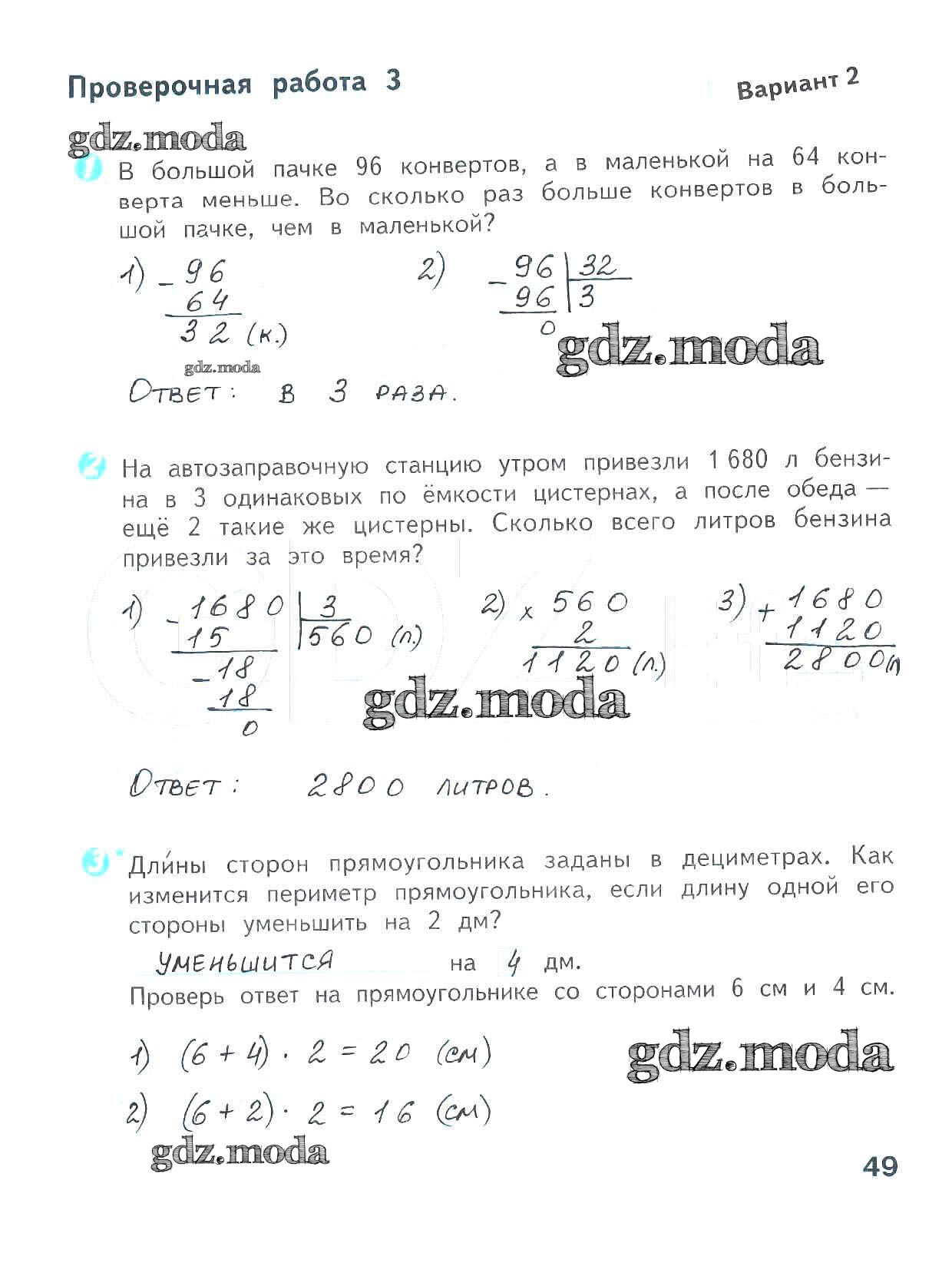 ГДЗ решение к заданию № 49 Математика 4 класс проверочные работы Волкова С.И. Просвещение 2014 ФГОС бесплатно на гдз.мода!