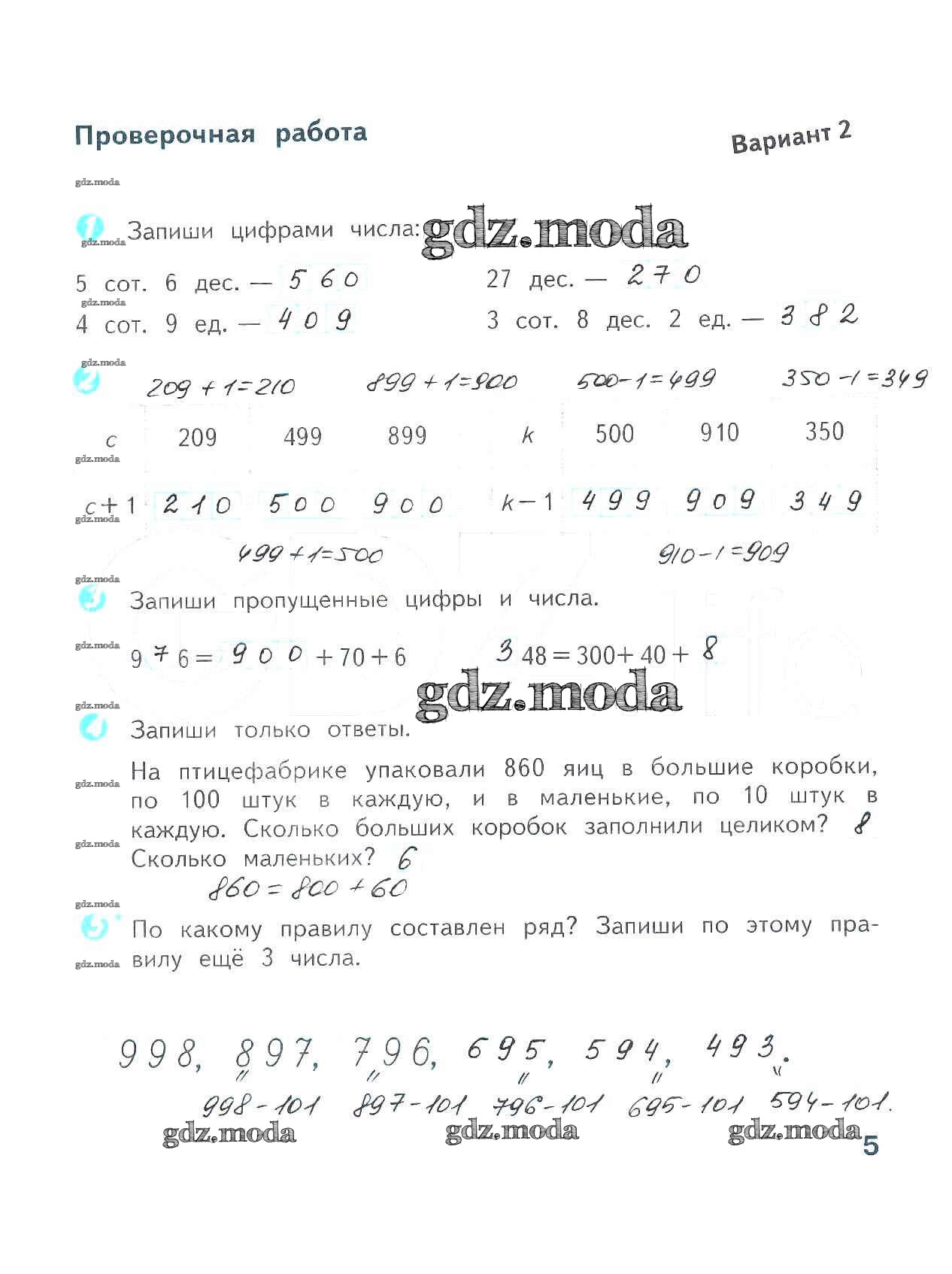 ОТВЕТ на задание № 5 Проверочные работы по Математике 4 класс Волкова Школа России