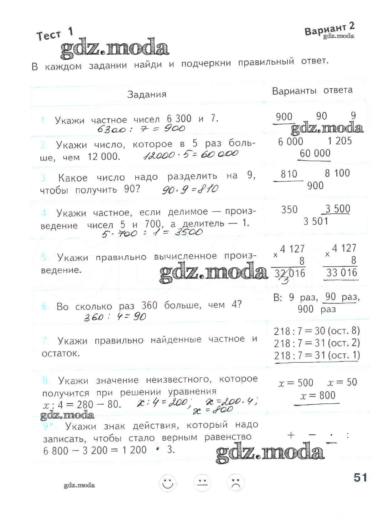 ОТВЕТ на задание № 51 Проверочные работы по Математике 4 класс Волкова Школа России
