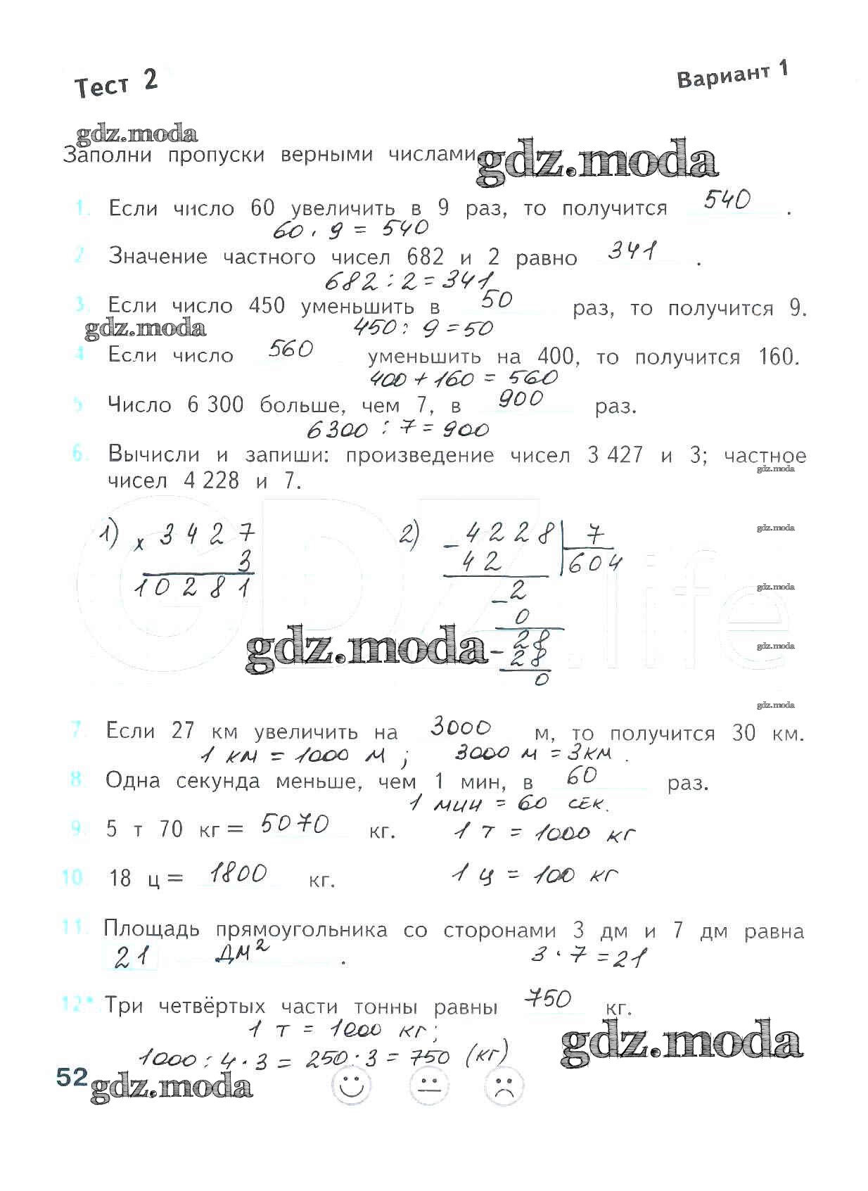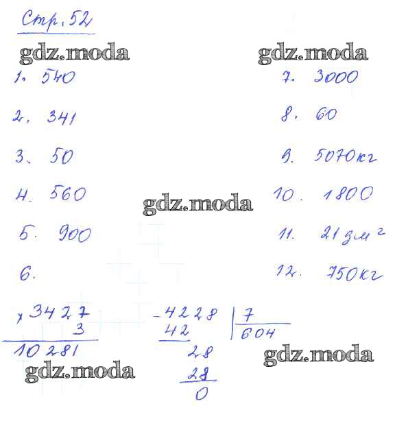 ГДЗ решение к заданию № 52 Математика 4 класс проверочные работы Волкова С.И. Просвещение 2014 ФГОС бесплатно на гдз.мода!