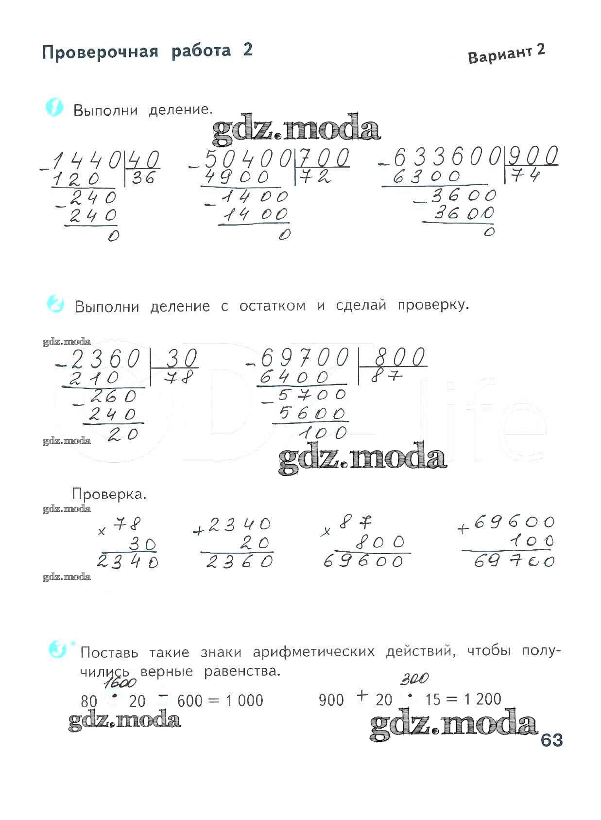ГДЗ решение к заданию № 63 Математика 4 класс проверочные работы Волкова С.И. Просвещение 2014 ФГОС бесплатно на гдз.мода!